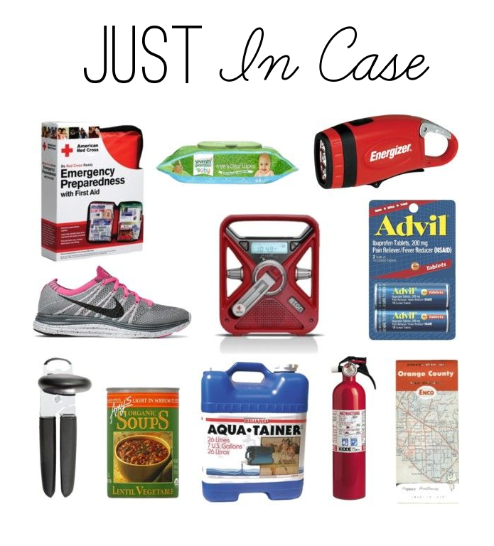 Heaven forbid anything happens where you’ll need these things but in light of the recent earth quakes we’ve been feeling in Southern California (and too much The Walking Dead) we’ve been gathering some things for our home. Another good place to have items is your car.