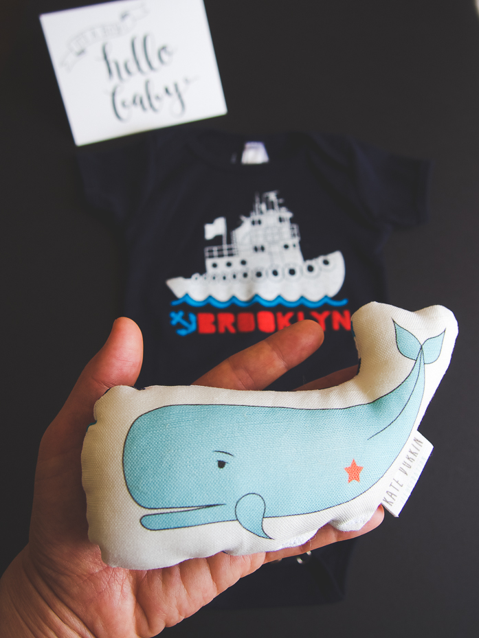 When she asked for my address, I was SO excitedly anticipating something with her gorgeous handwriting and not only did she send that but an awesome onesie representing NYC and the cutest whale toy that I think I’m in love with. I want to frame this card!