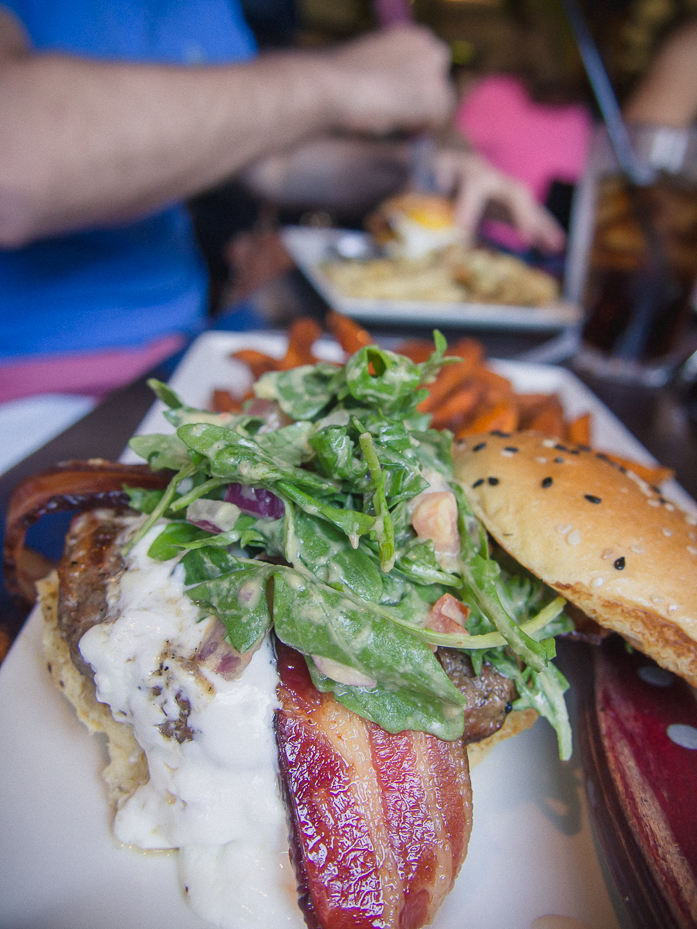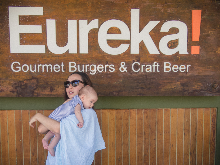What’s the sound of one hand clapping? The same sound as cutting food one-handed with a knife these days. Baby is on the lap now at every meal time. Everyone got their food at the restaurant and started eating as I stared longingly at my bacon, fig, goat cheese burger. Then in a fit of starvation, I futilely shanked the burger with one hand until Chris offered to cut it for me so I could eat it.