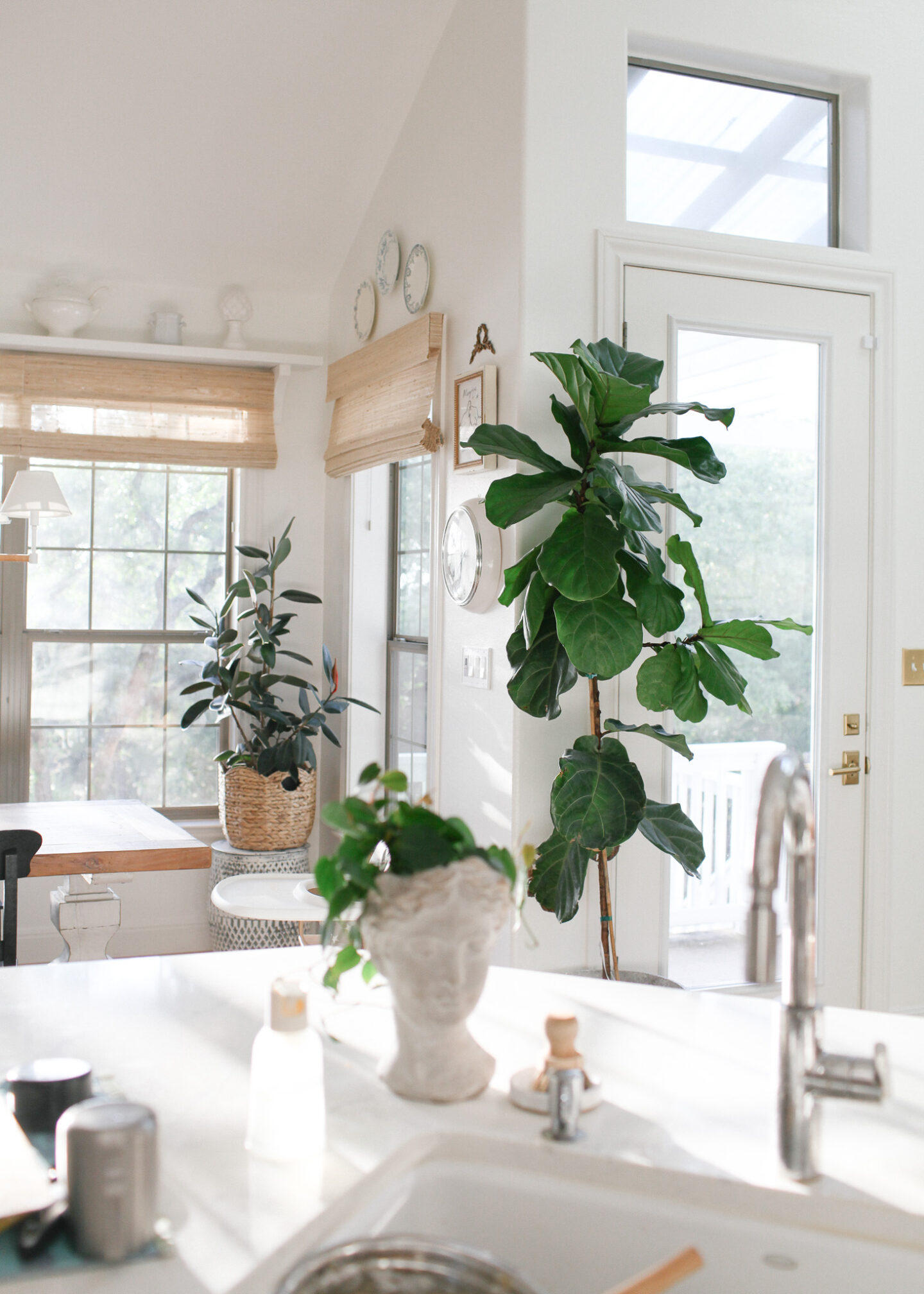 I paid about $40 (Costco) for this fiddle leaf fig (this had grown a year here in the photo at our California home) and $165 for this Audrey Ficus (from a nursery).