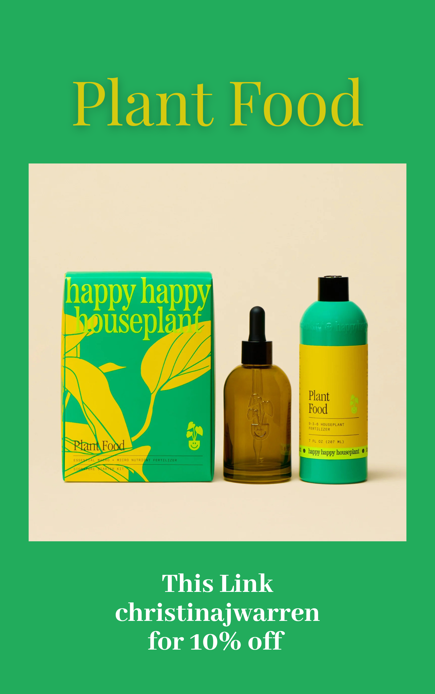 The easiest way to have super happy plants is to add this plant food (10% off with my code CHRISTINAJWARREN) to your water. It is full of nutrients to nurture your plants. It takes seconds to add to your water and it will give you growth results all year round.